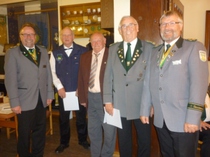 Während der Versammlung wurden zahlreiche Mitglieder der Burgdorfer Schützengesellschaft für ihre langjährige Mitgliedschaft geehrt. Stolze 60 Jahre dabei sind Ernst-August Ahrens, Jürgen Meyer und Jürgen Wilkens, die Glückwünsche und Treuenadel von Jörg Hoppe und seinem Stellvertreter Urs-Uwe Simanowsky entgegen nahmen. Ebenfalls 60 Jahre dabei sind Manfred Beck und Dieter Bierkamp, die allerdings nicht persönlich anwesend sein konnten. Seit einem halben Jahrhundert gehört Jürgen Schlüter der Schützengesellschaft an und nahm seine Ehrung entgegen. Klaus Behrens und Hans Rode blicken ebenfalls auf eine 50-jährige Zugehörigkeit zurück. Seit 40 Jahren aktiv im Spielmannszugwesen und zugleich in der Burgdorfer Schützengesellschaft sind Diana Heuer und Gero Mahnke. Junggeselle Thomas Dinkhauser ist ebenfalls seit vier Jahrzehnten bei den Burgdorfer Schützen dabei. Zehn weitere Mitglieder konnten für 25 Jahre geehrt werden.