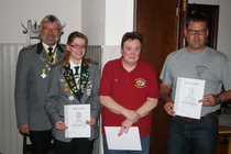 Auch schießsportliche Leistungen wurden während der Versammlung gewürdigt. Schießsportleiterin Silke Hartung konnte gleich sechs Mitglieder mit der "Goldenen Schützenschnur" auszeichnen. Margot Furche, Daniela Rinne, Jens Uwe Hansen, Jerome Rene Lorenz, Werner Pauke und Holger Heise erfüllten die Bedingungen für den Erwerb dieser Auszeichnung. In fünf verschiedenen Disziplinen (Luftgewehr, Kleinkaliber, Luftpistole, Sportpistole und Zimmerstutzen) sind hier herausragende schießsportliche Leistungen erforderlich, die von den sechs Geehrten entsprechend erfüllt worden sind.