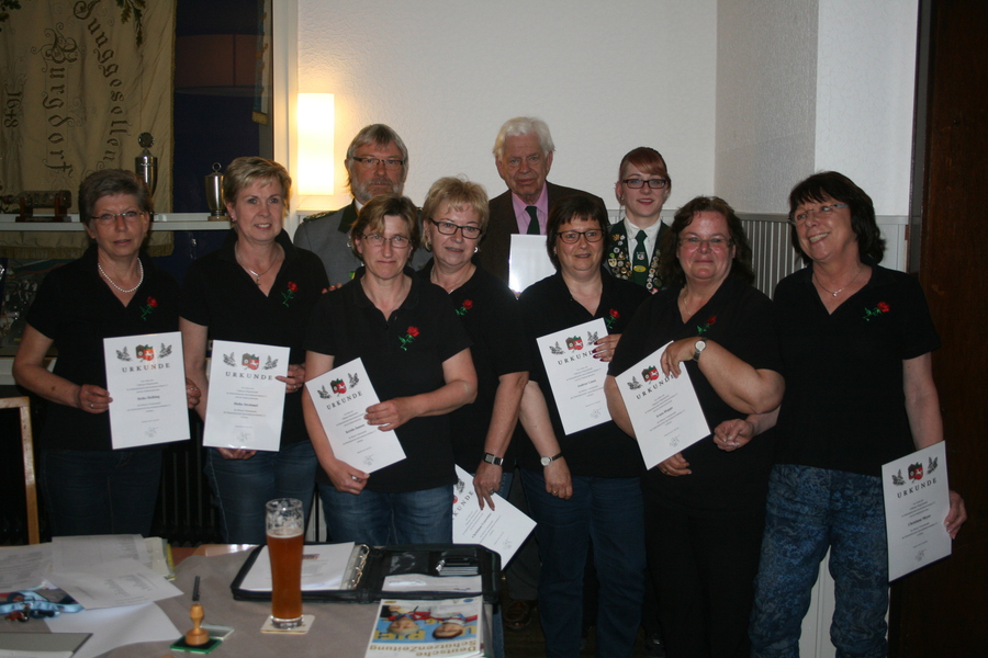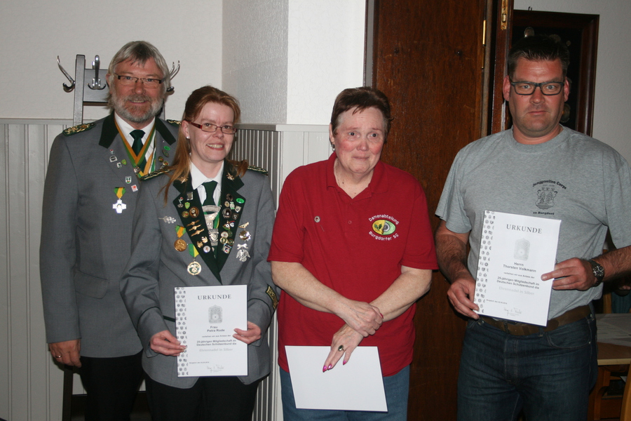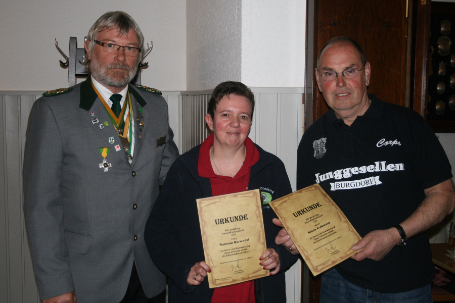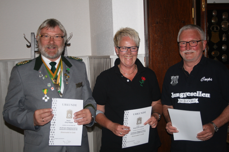 Ein halbes Jahrhundert halten Ursula Bartz, Margrit Küppers, Karl-Heinz Meyer und Harald Görlitz dem Verein die Treue. Schon vier Jahrzehnte sind Stephanie Fritsch, Hans-Joachim Brauer, Olaf Lüdtke, Rolf Hoppe und Schützenchef Jörg Hoppe dabei.